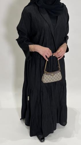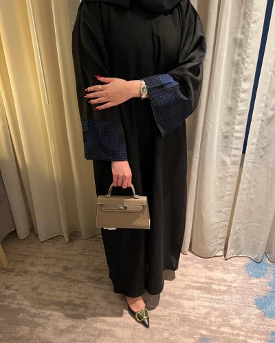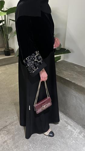 عباية مخمل نص بشت اكمام جلد اسود مع ربطة كتف داخلية